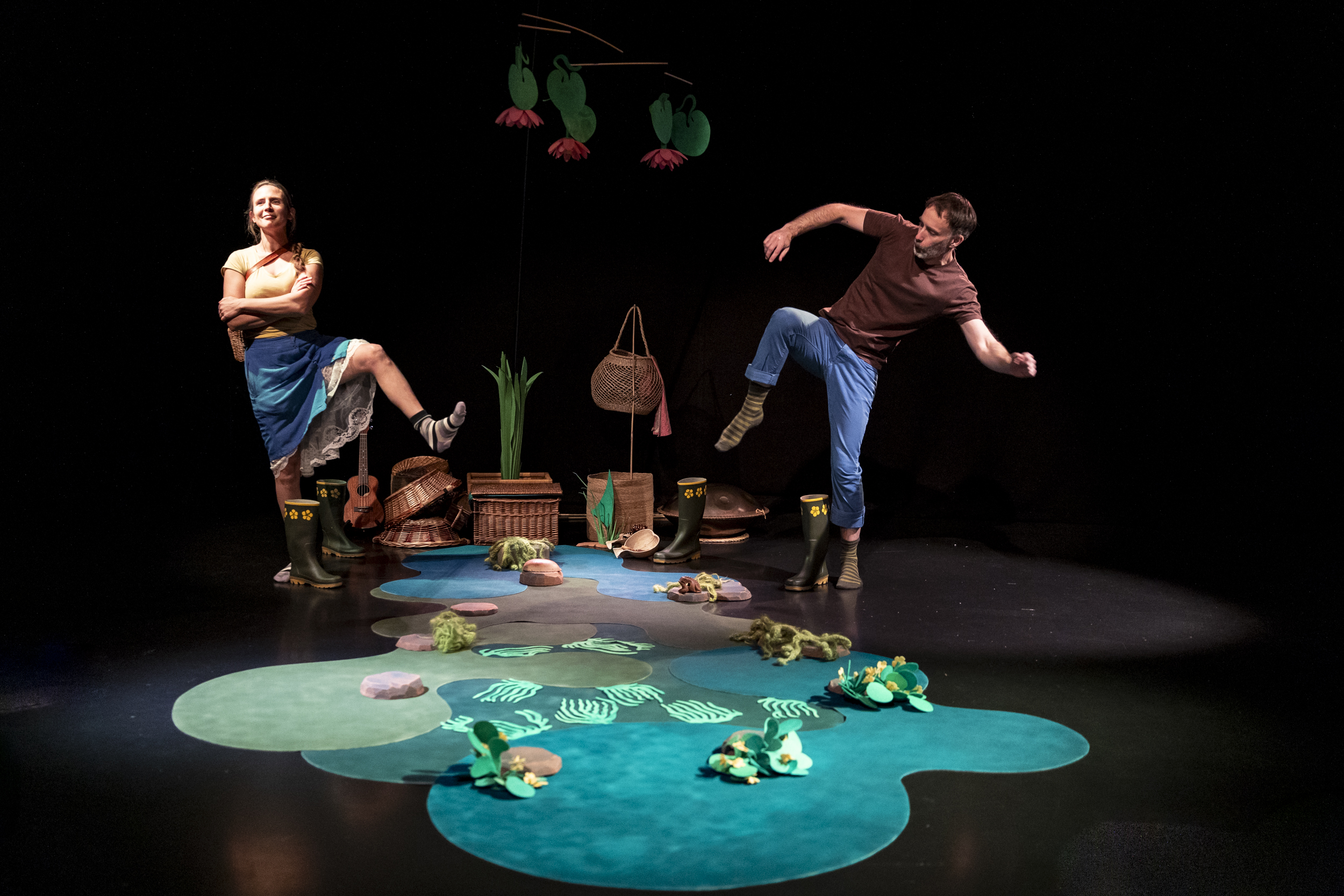 Mélina et Côme jouent, chantent, racontent les souvenirs d’un lieu et de l’enfance… les sens en éveil.